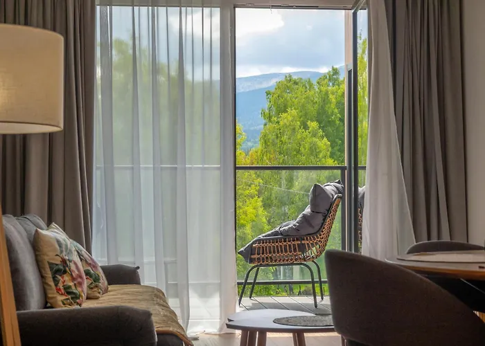 Situado en Szklarska Poręba, el Karkonosky Apartamenty - Ostoja Spokoju Szklarska Poręba está a 3 km de Kamieńczyk Waterfall, ofreciendo a sus huéspedes sauna. Para una estancia más agradable y relajante, los huéspedes de este apartamento de 40 m^2 tienen acceso a un salón de spa.